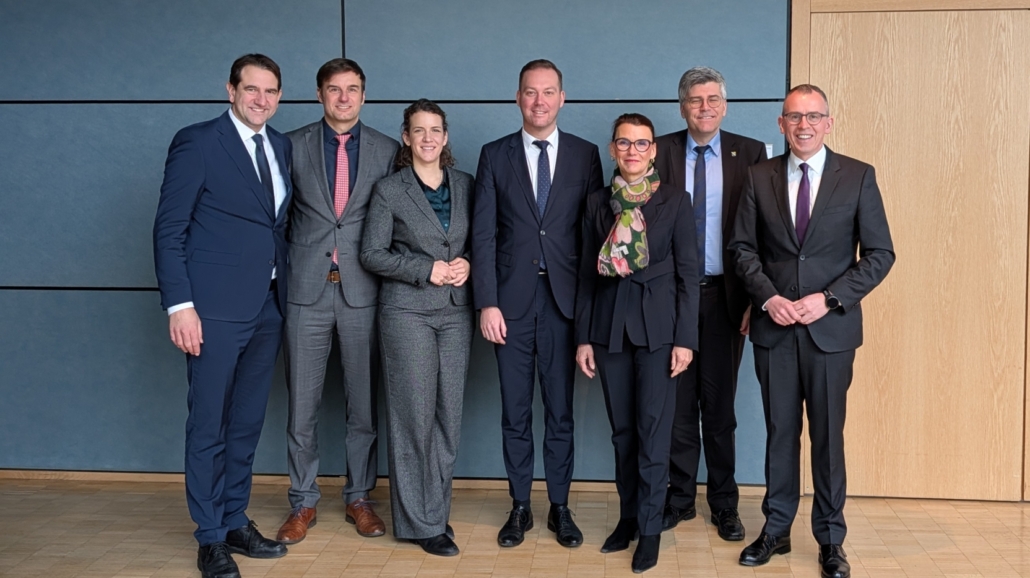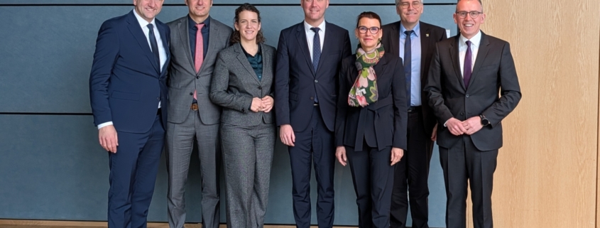 Die Landräte Dr. Martin Kistler (Waldshut), Zeno Danner (Konstanz) und Sven Hinterseh (Schwarzwald-Baar) sprachen in Berlin mit den Bundestagsabgeordneten der Regierungsfraktionen, Dr. Lina Seitzl (SPD), Rita Schwarzelühr-Sutter (SPD), Andreas Jung (CDU) und Felix Schreiner (CDU), zu den grenzüberschreitenden Themen Fluglärm, das geplante Schweizer Tiefenlagerund die grenzüberschreitende Zusammenarbeit bei der Abfallentsorgung. Im Sinne einer guten Zusammenarbeit für die Region Südbaden ziehen die Landkreise und die Bundestagsabgeordneten an einem Strang.